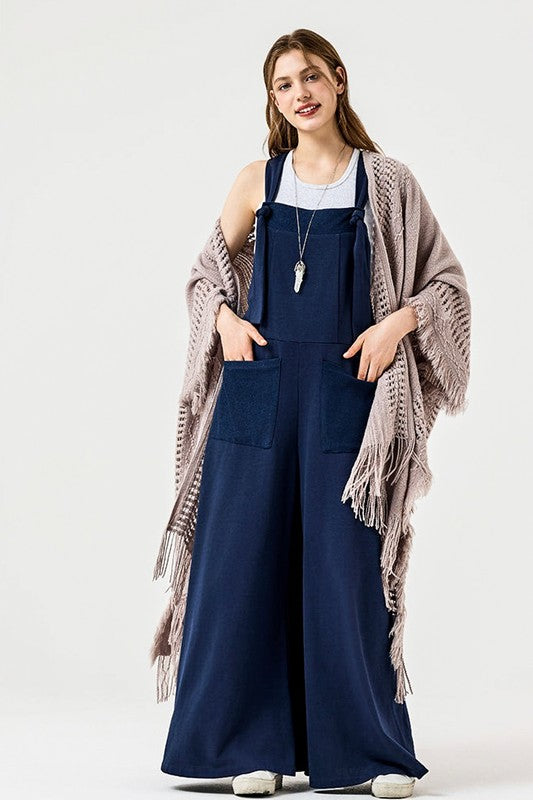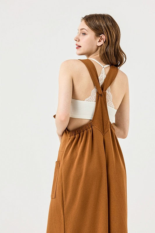 keyhole back, adjustable self-tie straps, a wide leg silhouette