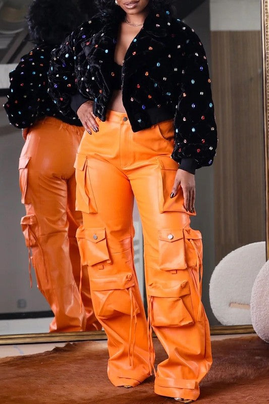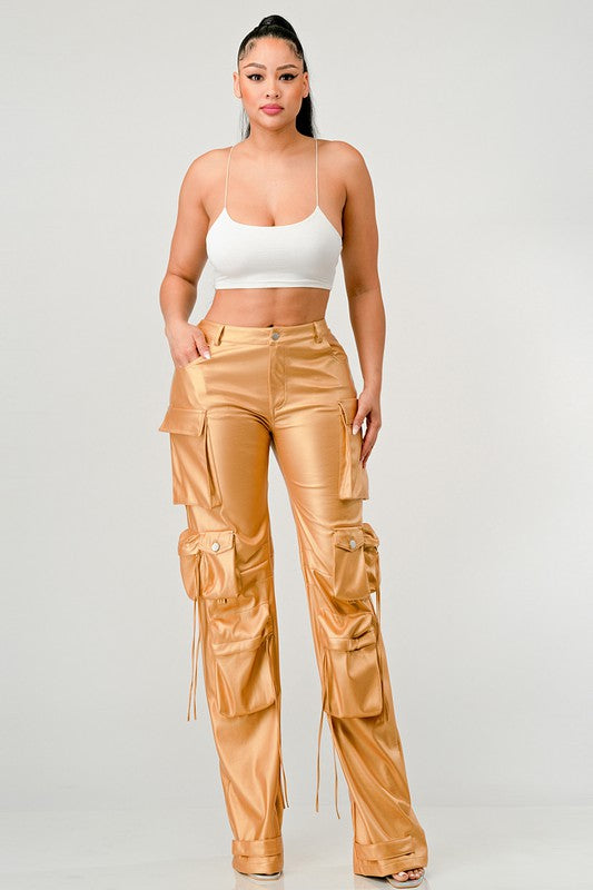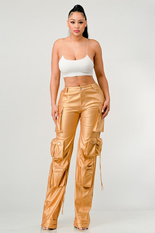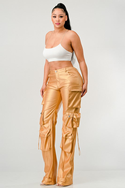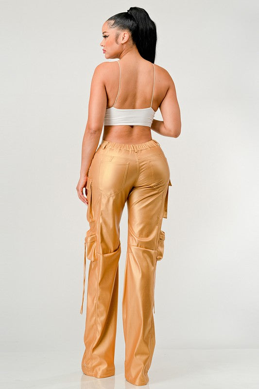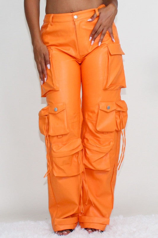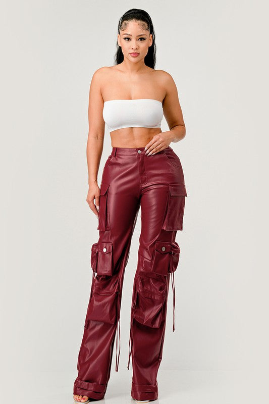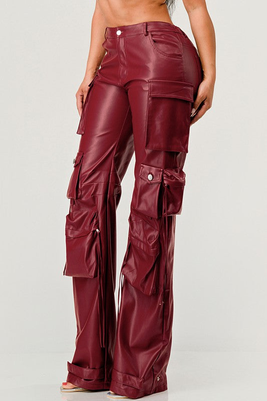 ATHINA FAMOUS PU LEATHER CARGO PANTS