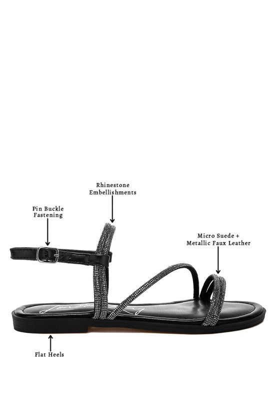 Crown your feet with exquisite rhinestone-embellished straps with our micro suede and metallic faux leather flats. The flats feature a round toe and ankle strap pin buckle fastening for utmost comfort. Pair these with workwear or special summer dinner date outfits.
