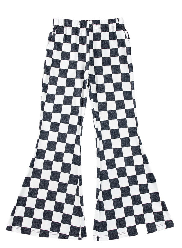 Black Checkerboard High Rise Casual Flared Pants