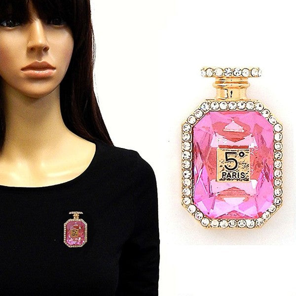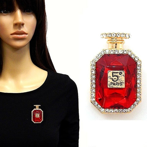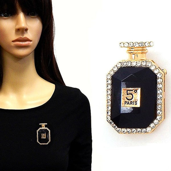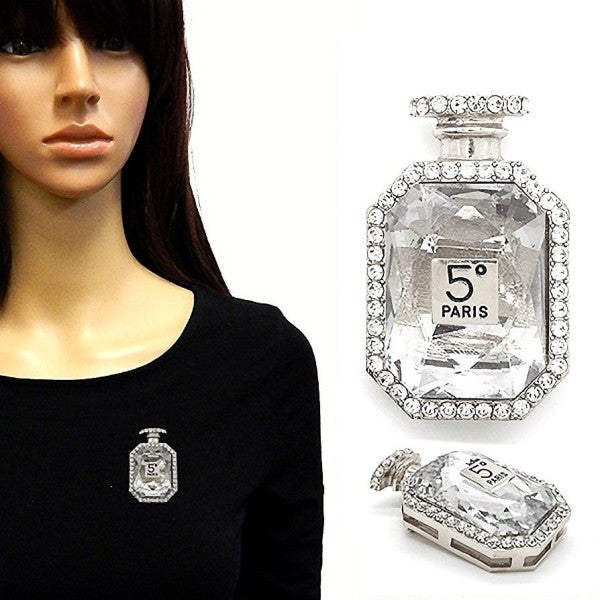-Sparkling crystal number 5 Paris perfume brooch pin, perfect for adding a touch of glamour to any outfit.