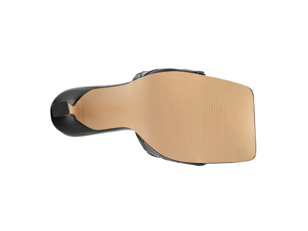 Slip-On High Heeled Sandal in square toe interesting woven strap looks elegant on feet and comes in three color options to choose from.