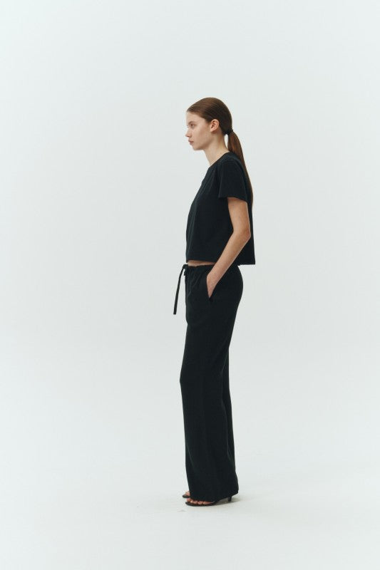 * Featuring a simple design with a waist drawstring for a customizable and comfortable wear.