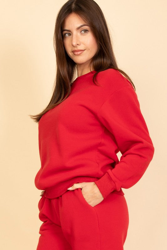 poly fleece pullover, crewneck sweatshirt, cozy fleece top, relaxed fit sweater, casual warm pullover, everyday essential