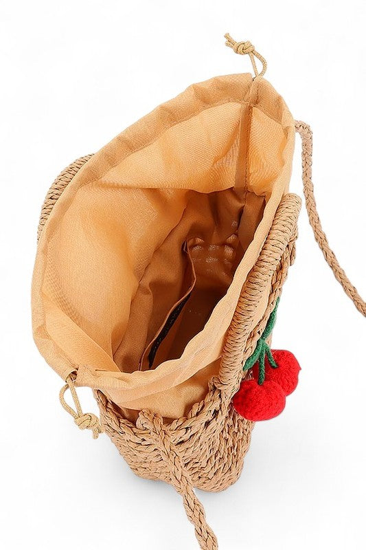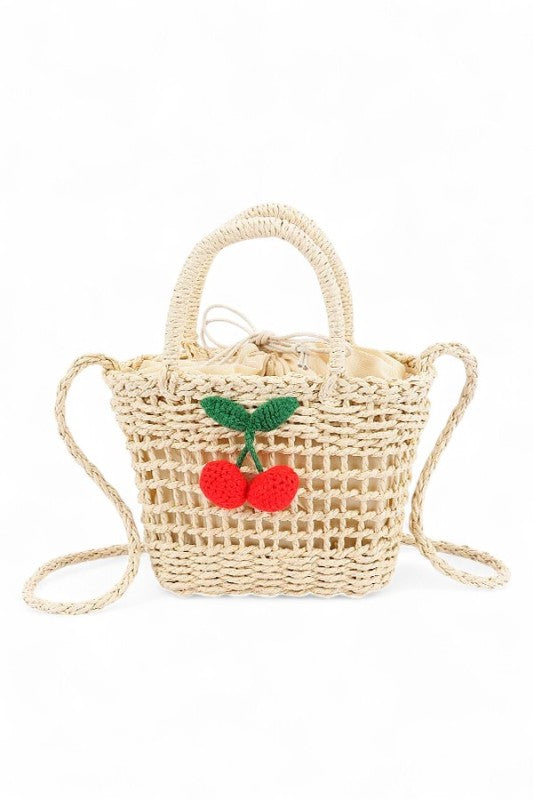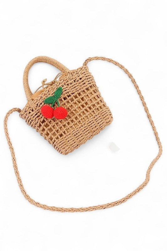 Crochet Cherry Straw Basket Swing Bag