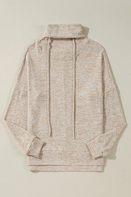 Drawstring Cowl High Neck Long Sleeve Sweatshirts