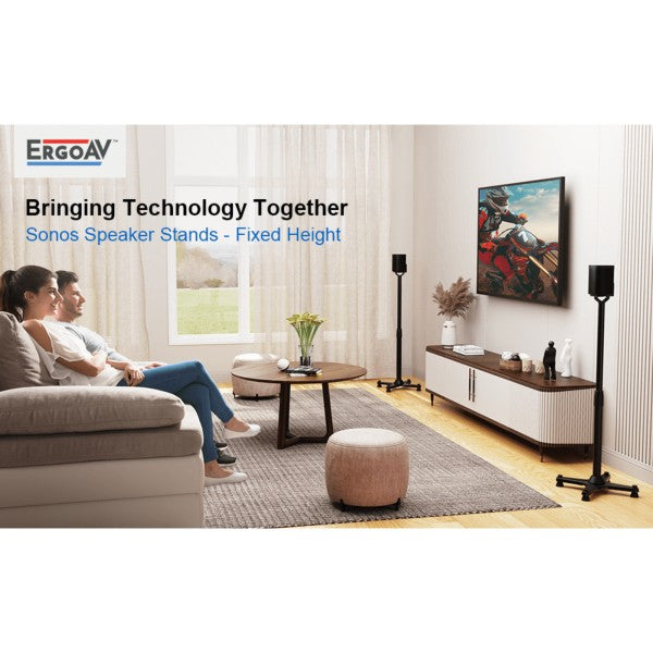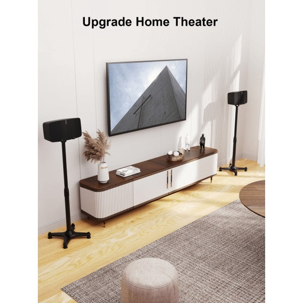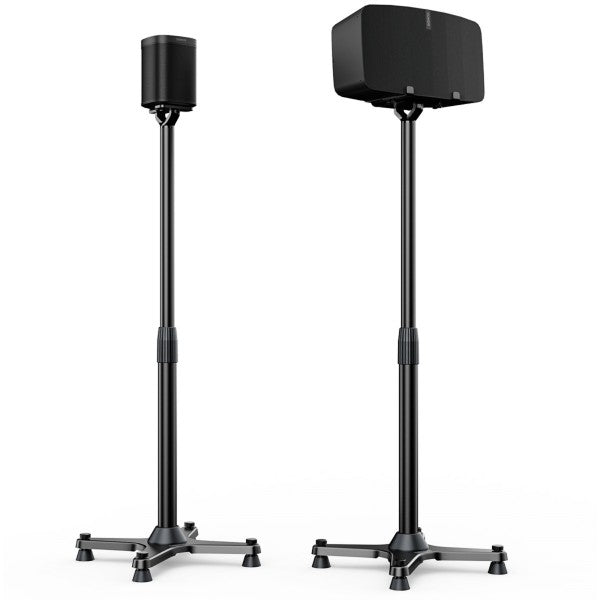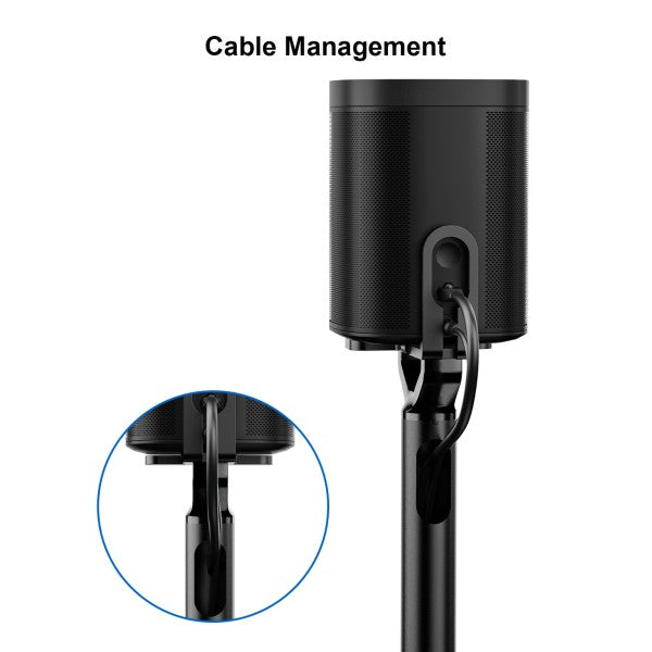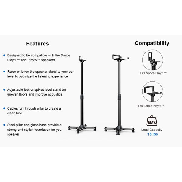 The ERSSM3-01B is designed to be compatible with the Sonos ERA 100, ERA 300, One, One SL and Five speakers. Adjustable pillar raises or lowers the speaker stand to your ear level to optimize the listening experience. The adjustable feet or spikes level stand on uneven floors and improve acoustics. Built in cable management allows cables to run through pillar and underneath base to create a clean look. Steel pillar and base provide a strong and stylish foundation for your speaker.