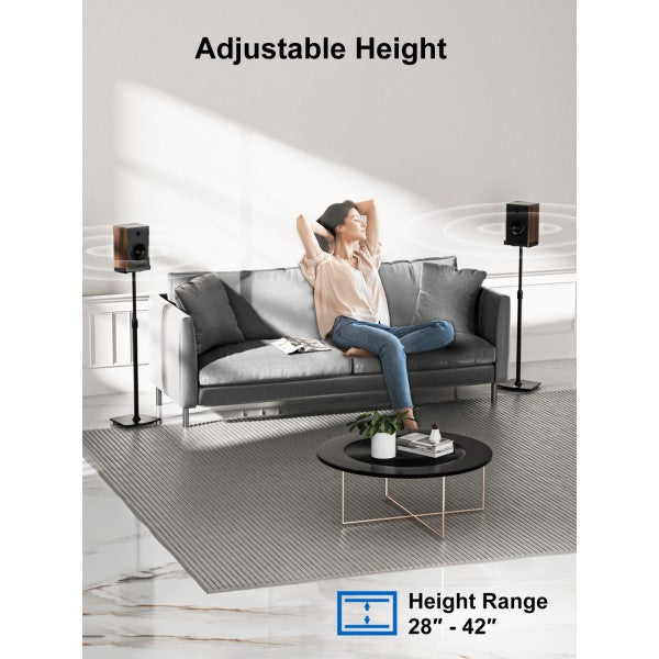 - Height adjustable - raise or lower the speaker stand to your ear level to optimize the listening experience