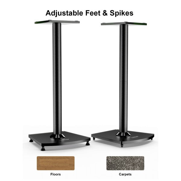 - Adjustable feet or spikes level stand on uneven floors and improve acoustics