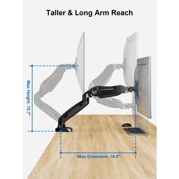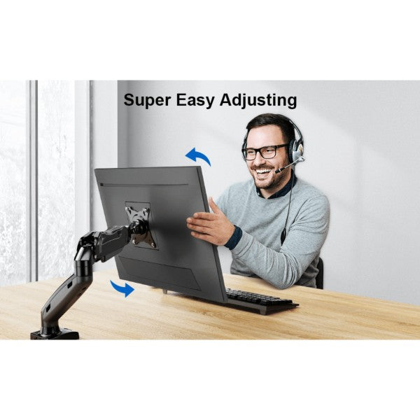 - The gas spring arm provides easy height adjustment - simply move the monitor where you want it, no tools required