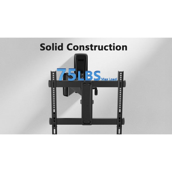The ERMMM9-01B is a single stud full motion mount that fits most 32\" to 65\" TVs up to 75 lbs. Enhanced movement provides up to 15-degree tilt and 60-degree swivel for the best viewing angle. This mount can extend up to 20\" and has a profile of 2.9\". Level adjustment allows the TV to be properly leveled after installation. Safety tested and UL certified. Integrated cable management helps to conceal unsightly power and HDMI cables.