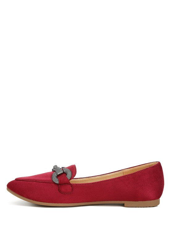 The horsebit embellished loafers feature a flexible sole and a comfortable cushioned insole, making them ideal for pairing with your spring outfit or a trendy dinner fit. With a closed-pointed toe, the loafers are all set to take you places.