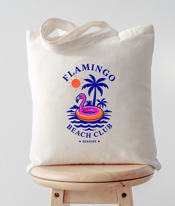 Our Flamingo Beach Club tote is made for salty air, sandy toes, and spontaneous adventures. Light, roomy, and ready to carry all your beach day essentials (plus a little attitude).