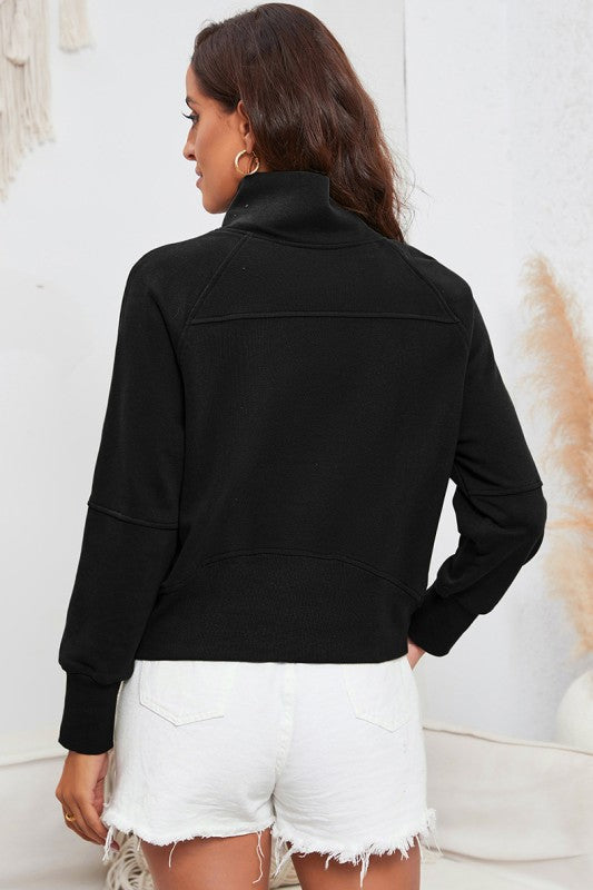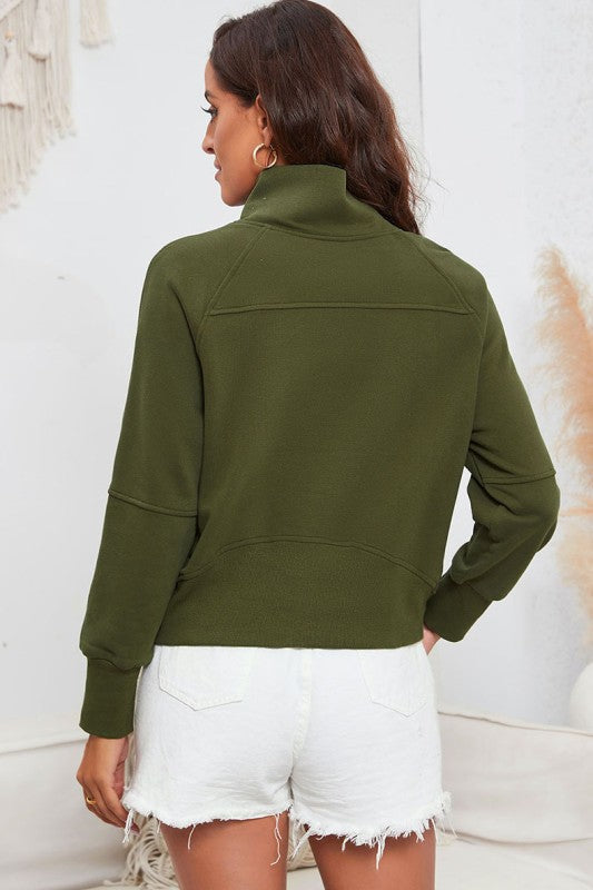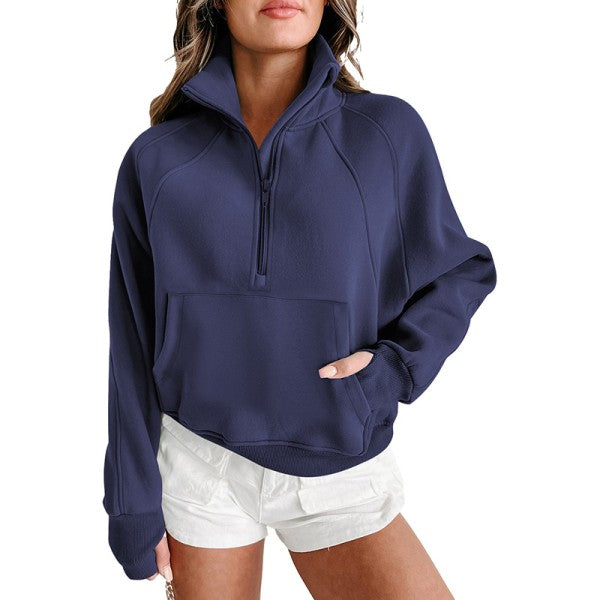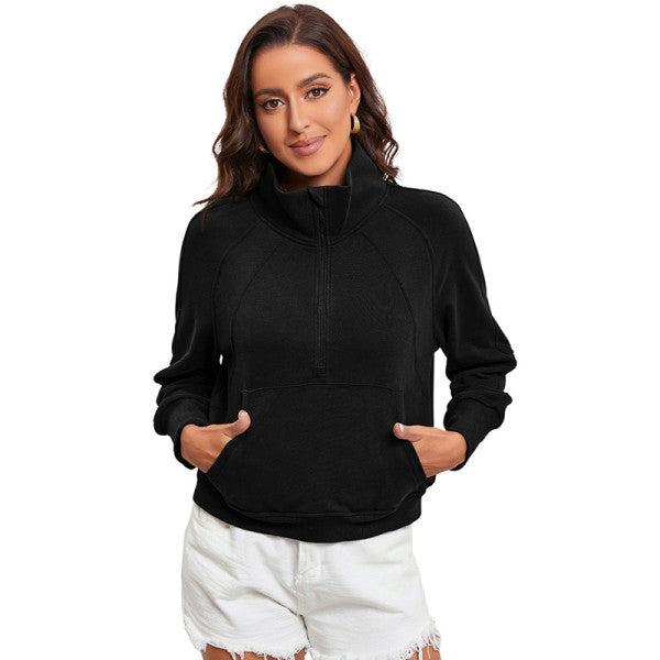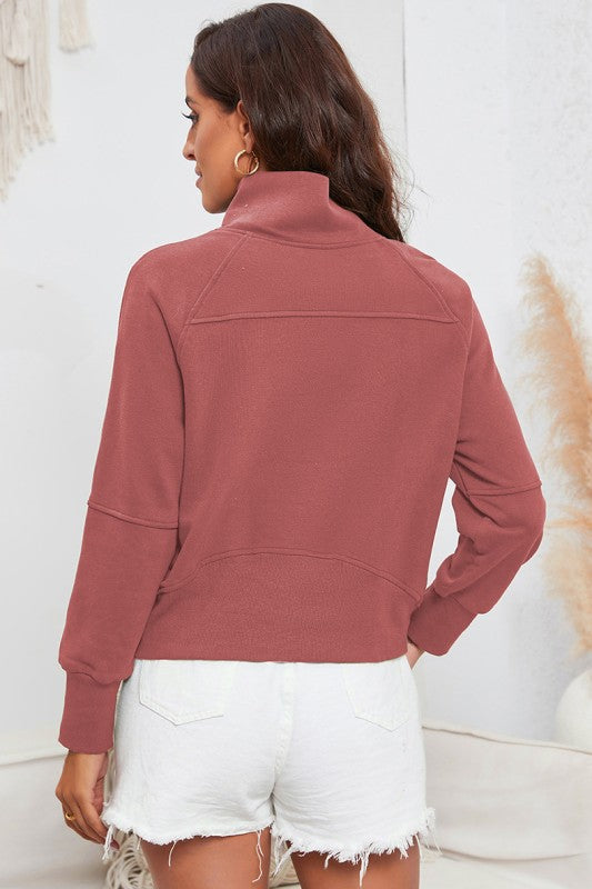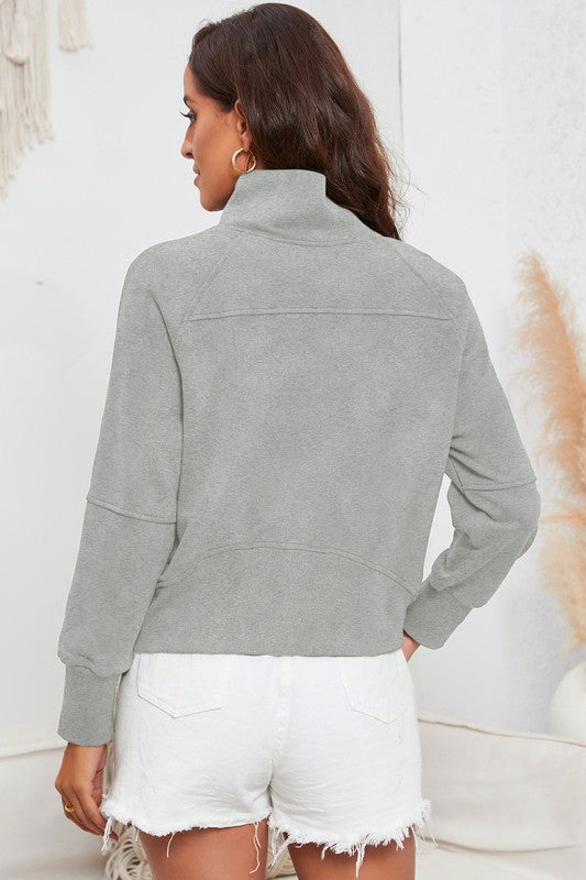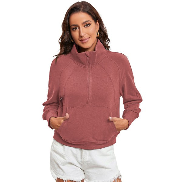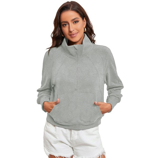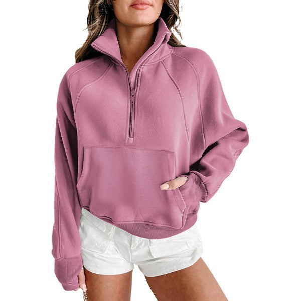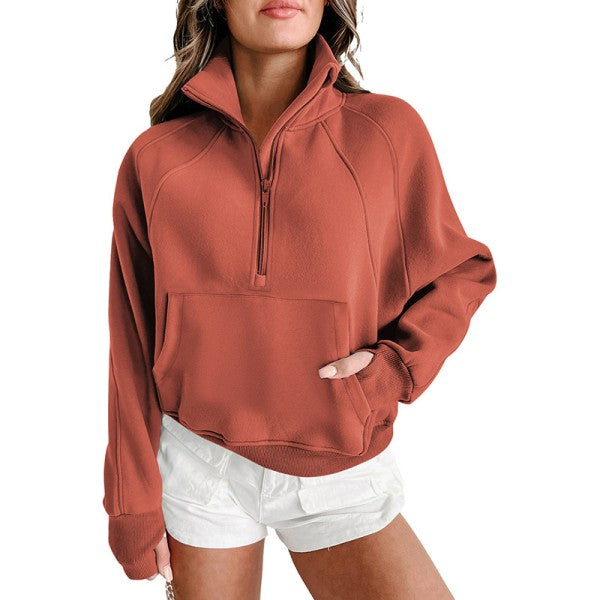 Fleece Lined Zip Up Stand Collar Sweatshirt
