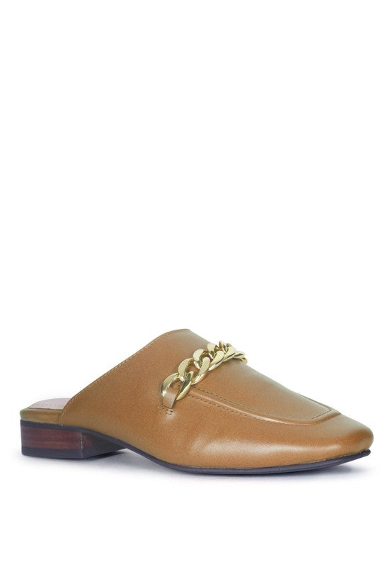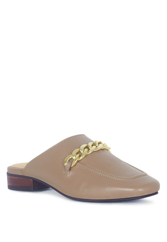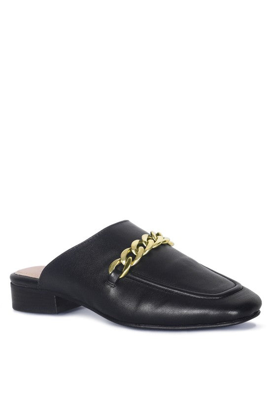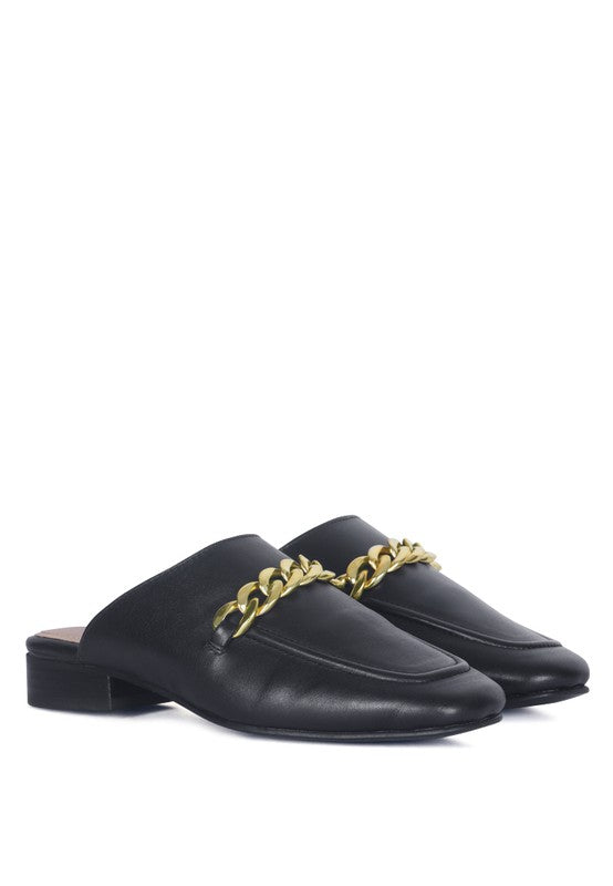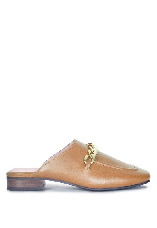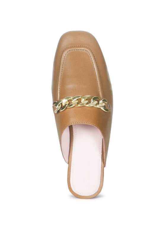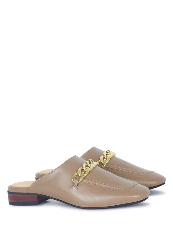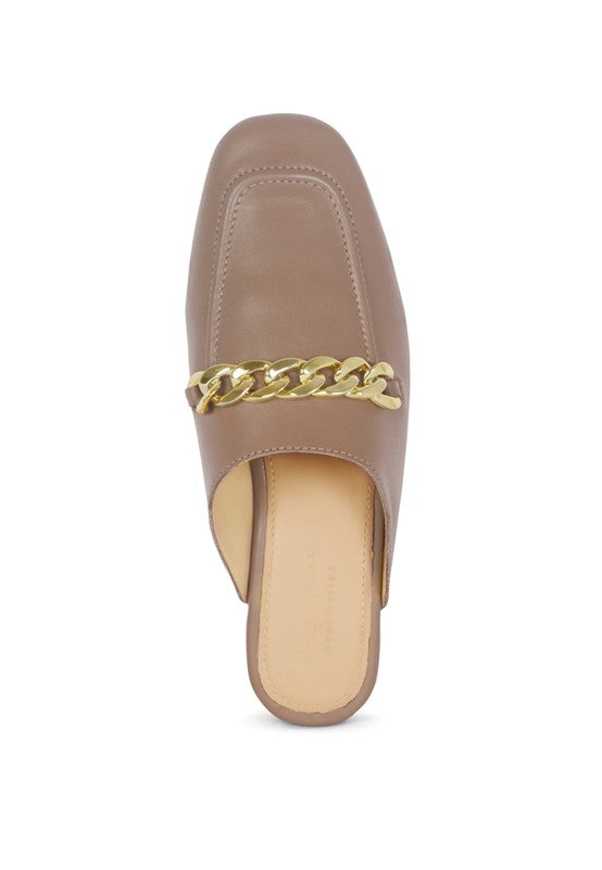 Luxury Handcrafted pair of semi casual Mules with high quality metallic trim details.