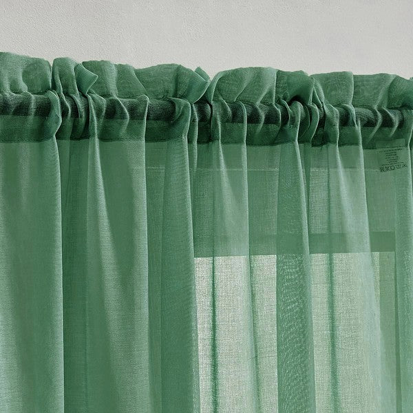 Hunter Green Rod Pocket Sheer Window Curtain Set