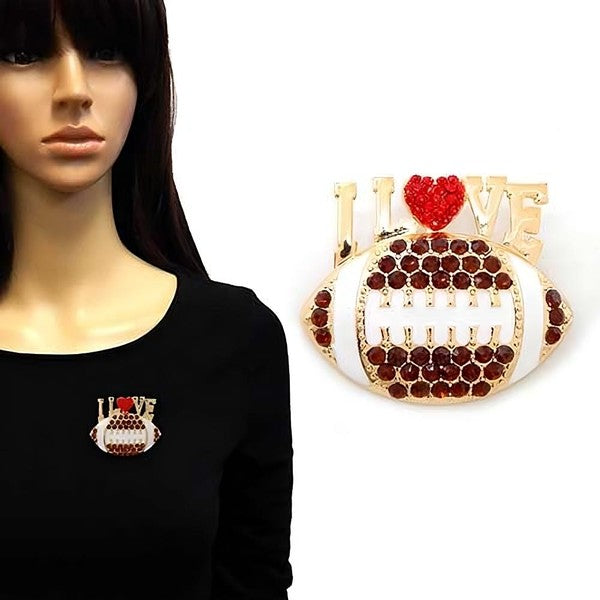 - Add a touch of glam to your game day outfit with this stunning rhinestone football brooch.