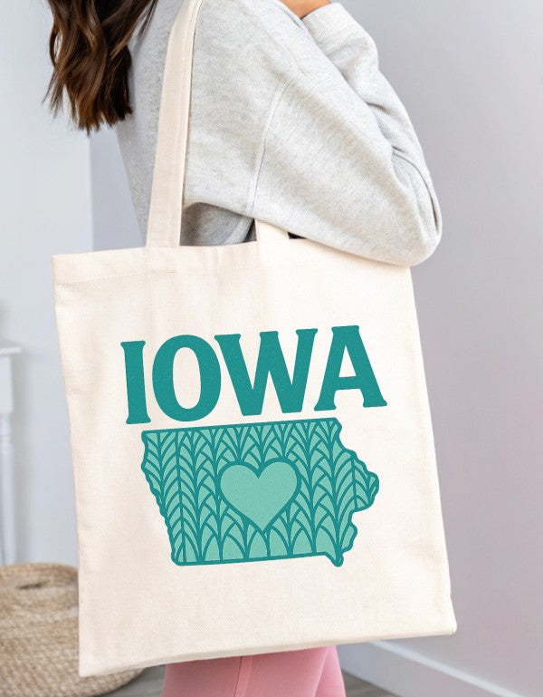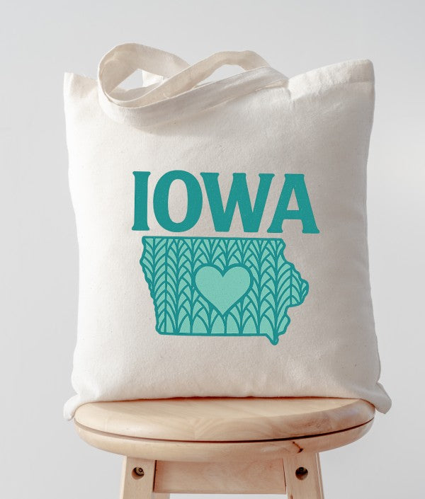 IOWA Teal Heart Canvas Tote