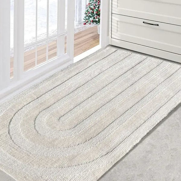 2x3 Ivory Light Cream Geometric Abstract Soft Pile Boho Minimal Area Rug