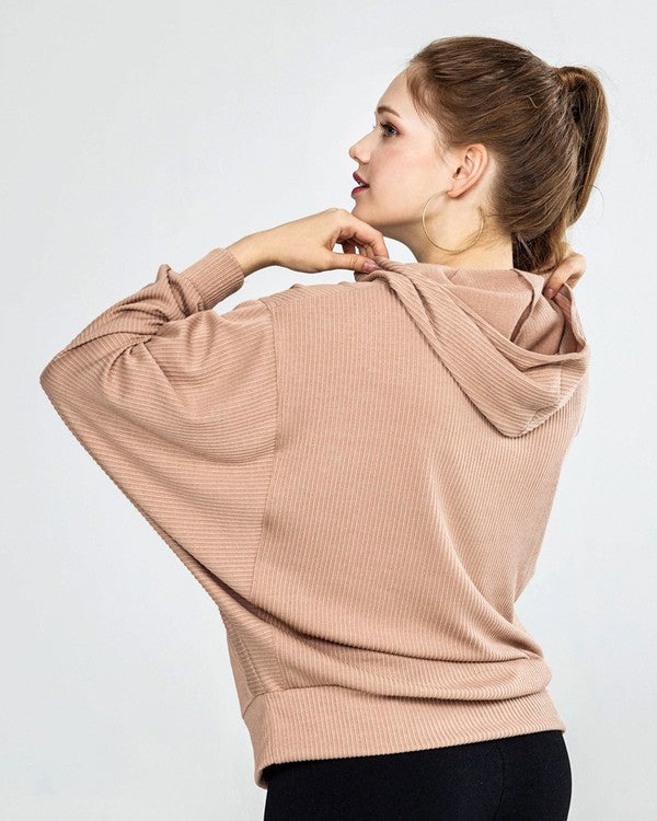 Oversized Dolman Sleeve Ribbed Hoodie Top