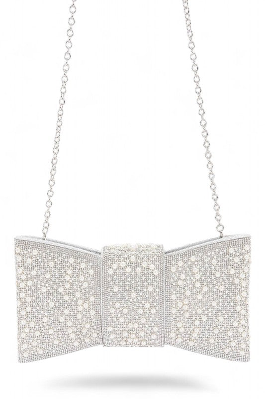 Pearl Studs Rhinestone Bow Tie Clutch Bag