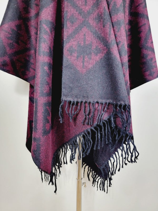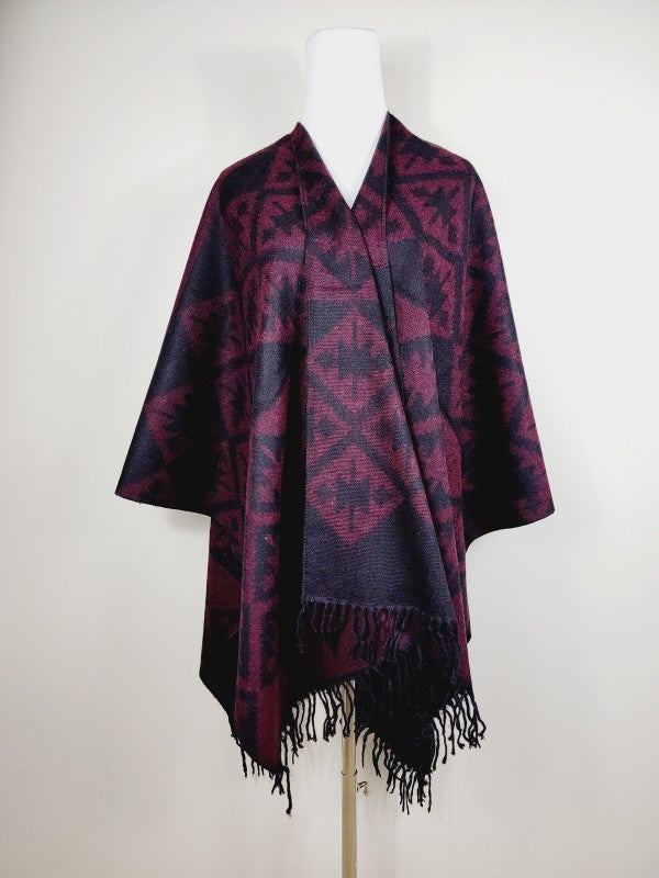Poncho Shawl, Extra soft - Reversible Cherry/Black