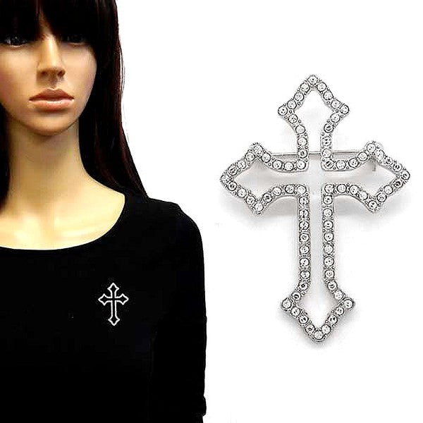 - This elegant rhinestone cross outline brooch pin features a stunning design that sparkles and shines.
