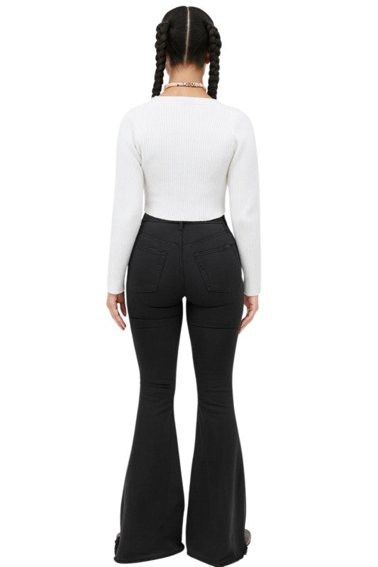 Turn heads in these statement-making women's flare jeans with cowhide front panels, blending bold Western style with modern edge. Featuring faux cowhide-inspired paneling, a flattering high-rise fit, and raw hem detailing, these jeans are perfect for festivals, concerts, or everyday streetwear with a rustic twist. The black denim base contrasts beautifully with the cowhide print, giving a chic yet rugged look that pairs effortlessly with boots or heels. Made with quality craftsmanship and designed for comfort, these standout flares bring cowboy glam to your wardrobe.