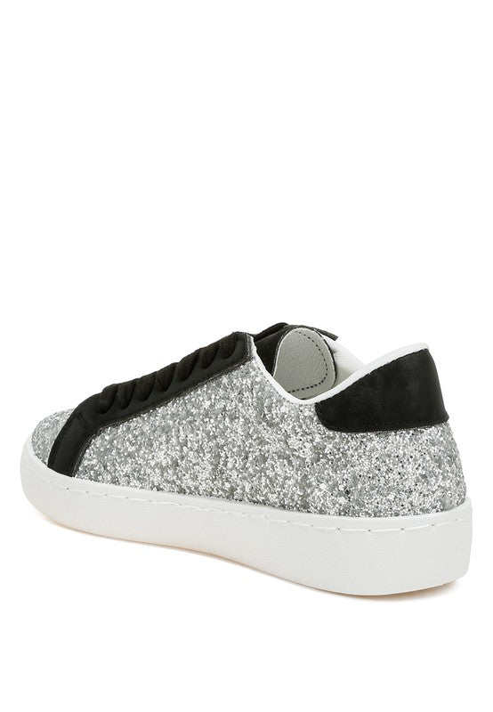 The glitter sneakers are a maximalist dream with the glitter upper and the microsuede star patchwork which adds a contrasting effect to the design of the sneakers. The pair is also quite comfortable with cushion insole and chunky sole which cuts strain and offers a relaxed fit.