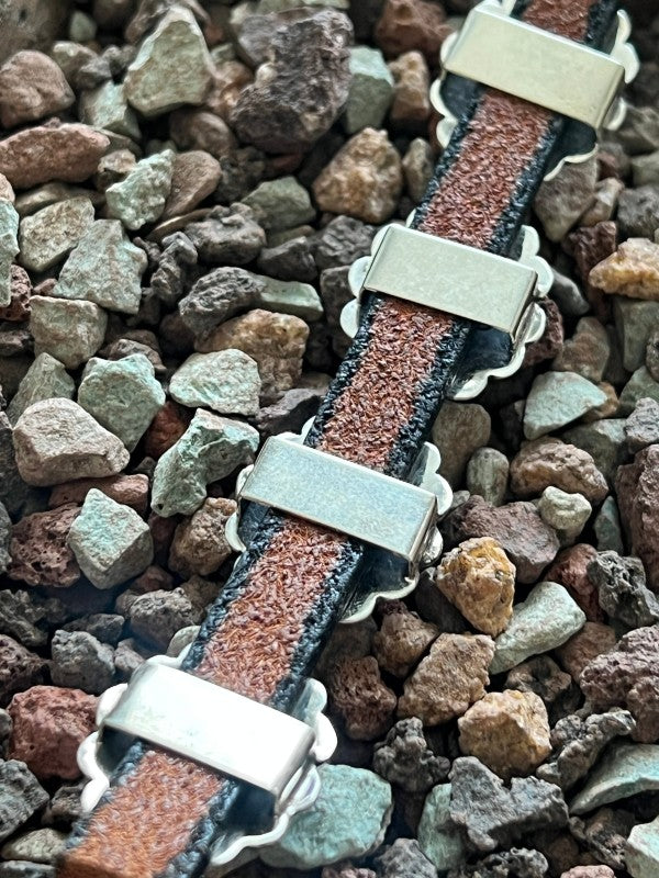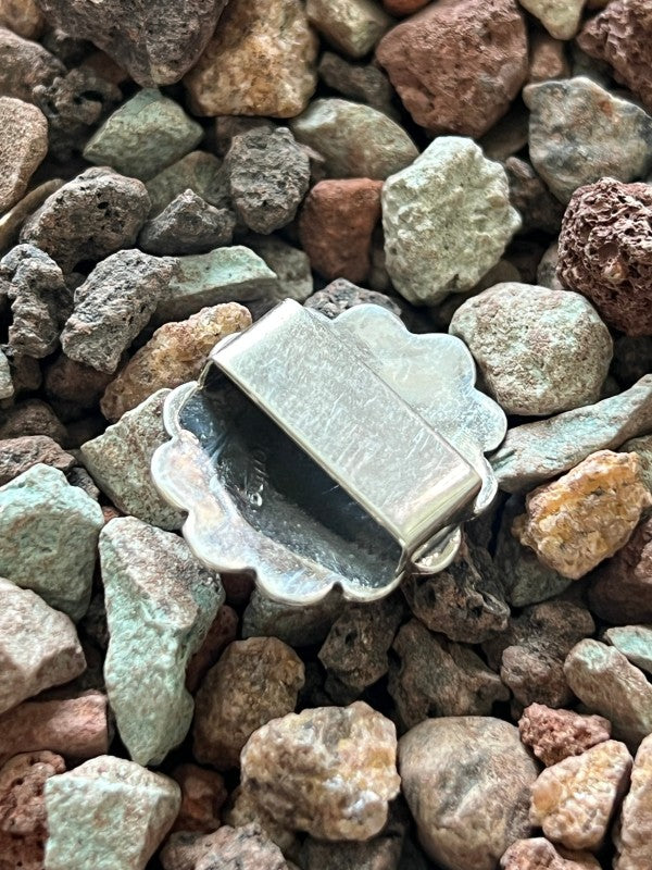 These sterling silver slide conchos are perfect for your leather projects! Slide bars are base metal. Turquoise color will vary. Make sure to search “Concho Slide” to see all styles available. This listing is for one piece.