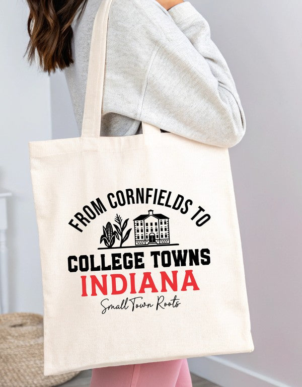 Our From Cornfields to College Towns tote captures the heart of the Hoosier state, where fields stretch for miles, dreams take root, and small-town spirit meets big campus energy.