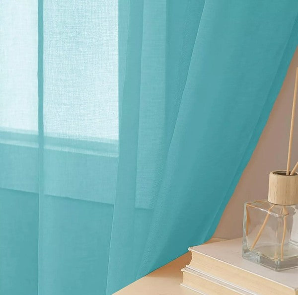 Turquoise Rod Pocket Sheer Window Curtain Set 63\" Inches Long (2 Panels)