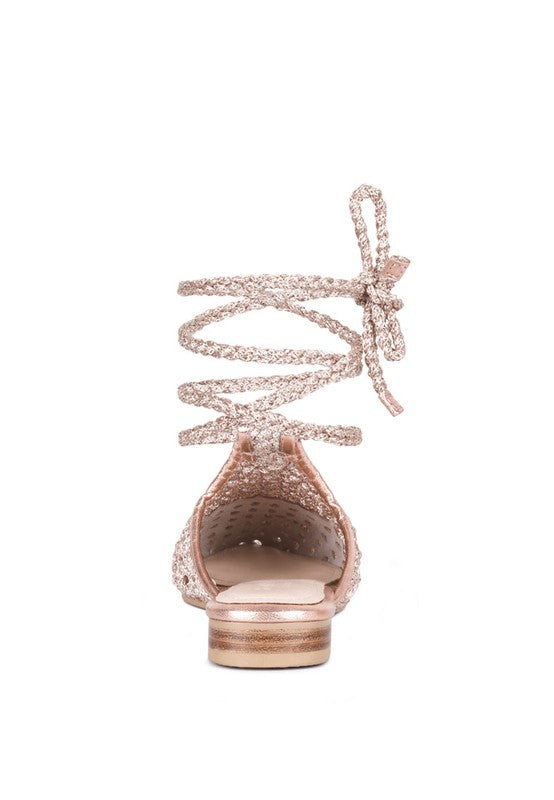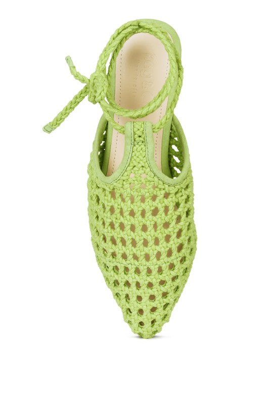 TUTSI HANDWOVEN HONEYCOMB COTTON TIE UP MULE FLATS